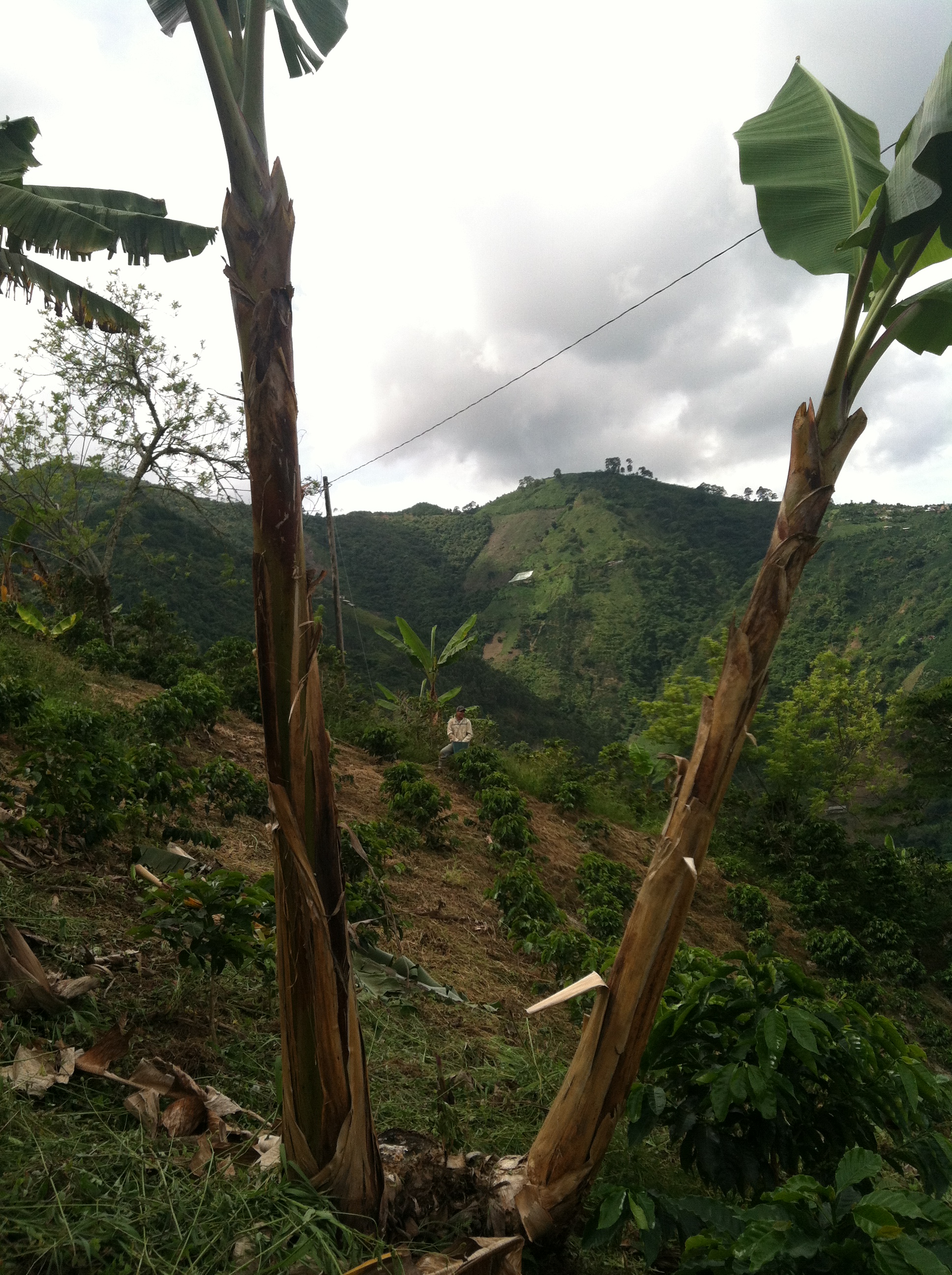 But for now the one word I always refuse to degrade through mistranslation is cafetal. The existing translations are “coffee field,” “coffee farm,” or “coffee plantation,” but none of these is accurate. All of these words immediately evoke images of expanses of flat space with homogenous rows of planted things. English’s agrarian language is one of amber waves of grain. We in the US don’t grow things in our mountains. Here they do. And English has no words for what it looks like.